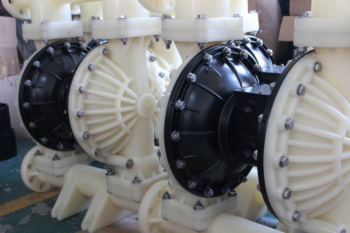 工程塑料氣動(dòng)隔膜泵是以聚丙烯為材質(zhì)的氣動(dòng)隔膜泵,具有質(zhì)量可靠使用壽命長(zhǎng)、噪音底、震動(dòng)小、揚(yáng)程高、永不死機(jī)、做工精細(xì)等六大優(yōu)點(diǎn),即能抽送流動(dòng)的液體,又能輸送一些不易流動(dòng)的介質(zhì),具有自吸泵、潛水泵、屏蔽泵、泥漿泵和雜質(zhì)泵等輸送機(jī)械泵的許多優(yōu)點(diǎn)。膜片可采用普通膜片或耐腐蝕膜片。